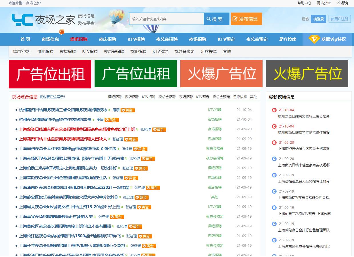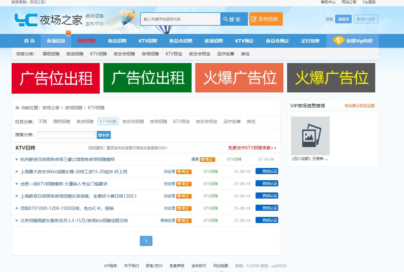 夜场之家酒吧KTV夜总会招聘广告行业信息发布网站源码