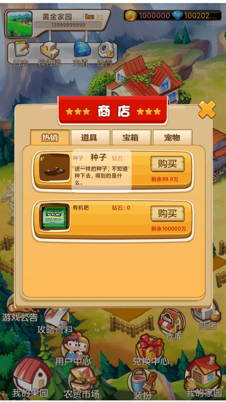 QQ农场种植游戏黄金家园虚拟农场+种植挖矿/复利分红/在线商城,可封装APP