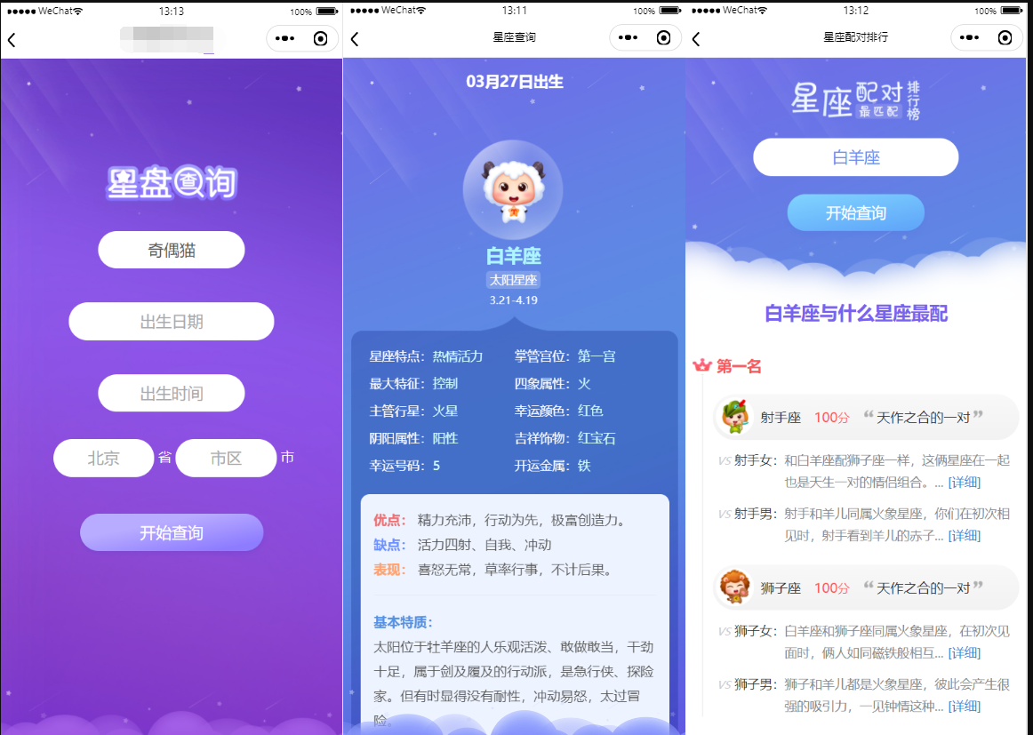 这是一款以星座运势查询,周公自定义解梦为主的一款小程序