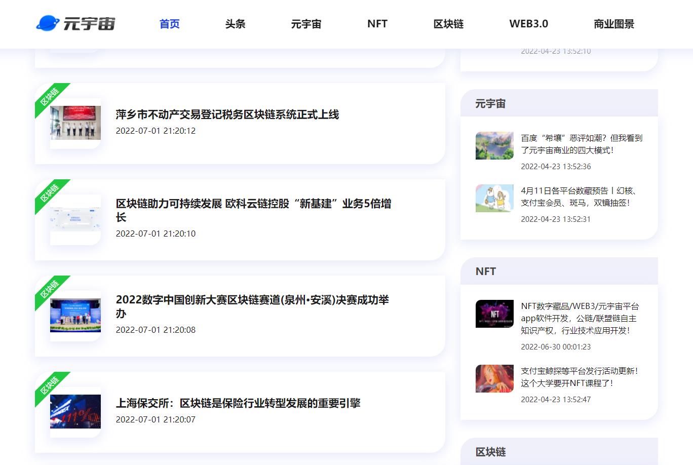元宇宙/NFT/游戏/区块链新闻网站官网 全自动采集 百度自动提交/蜘蛛站群SEO必备