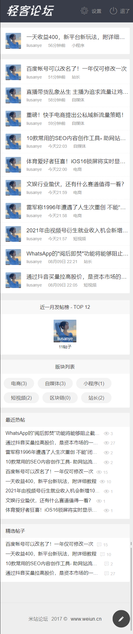 Thinkphp开发极简轻论坛源码(PC手机自适应)