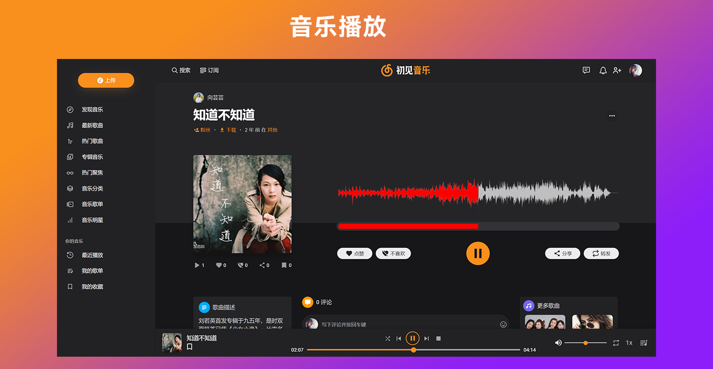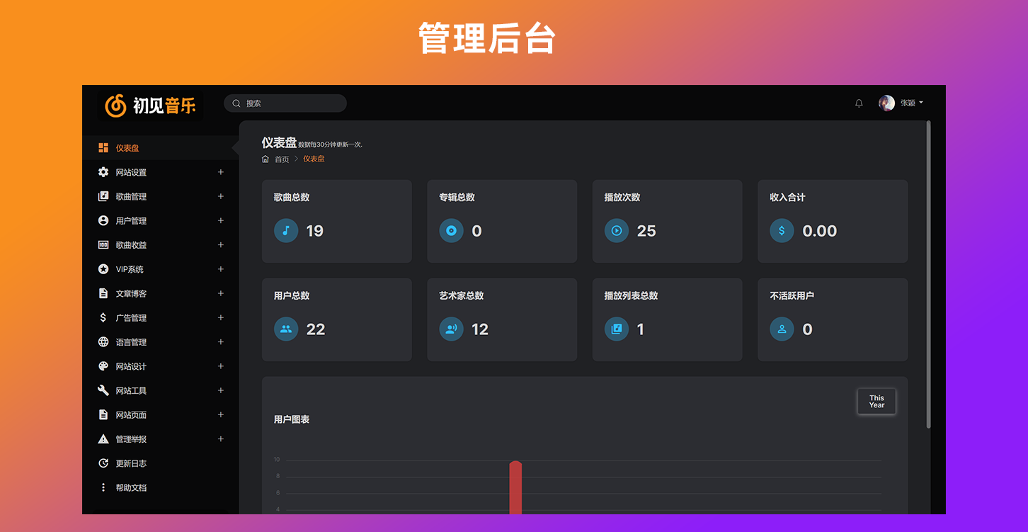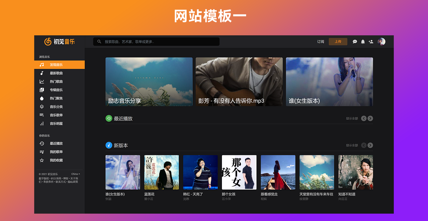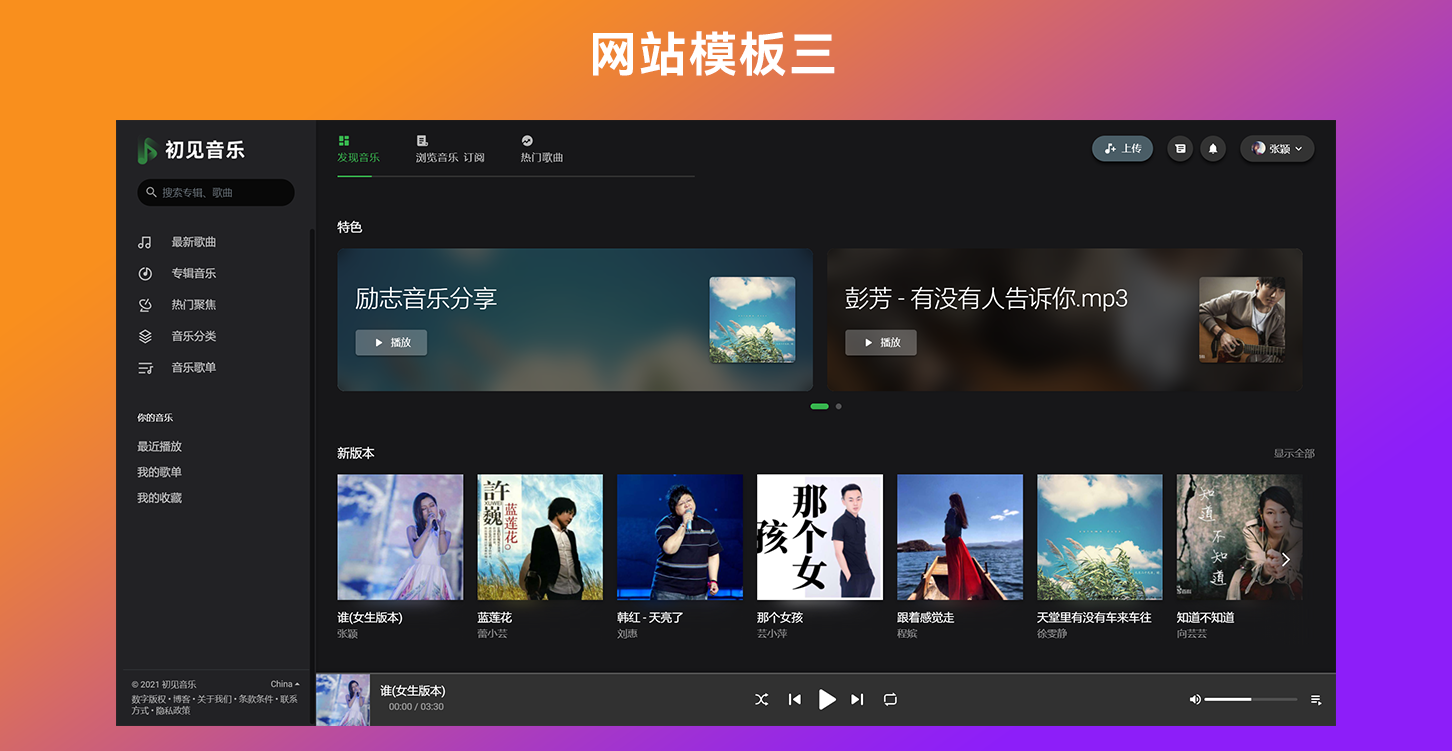 这是一款音乐网站源代码,程序语言是PHP,利用此款源代码你可以快速搭建自己的音乐网站,或者音乐分享平台,用户可以在你网站上注册然后上传音乐,或者评论、分享其他朋友的音乐,与此同时这款源代码配备了三款主题模板风格,你可以在后台自由切换你喜欢的模板主题,或者切换白天模式或者夜晚模式,配合管理后台,你可以设置网站的标题名称图片logo等。