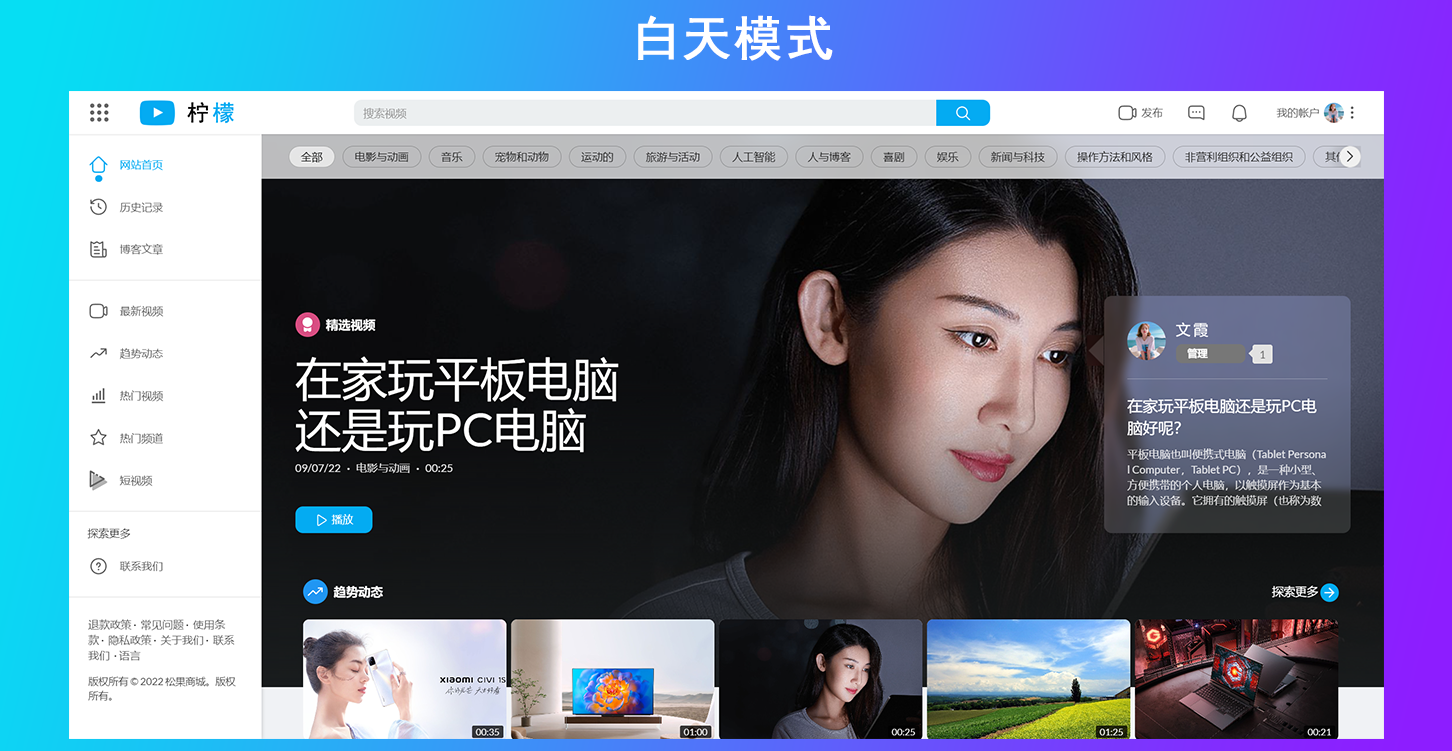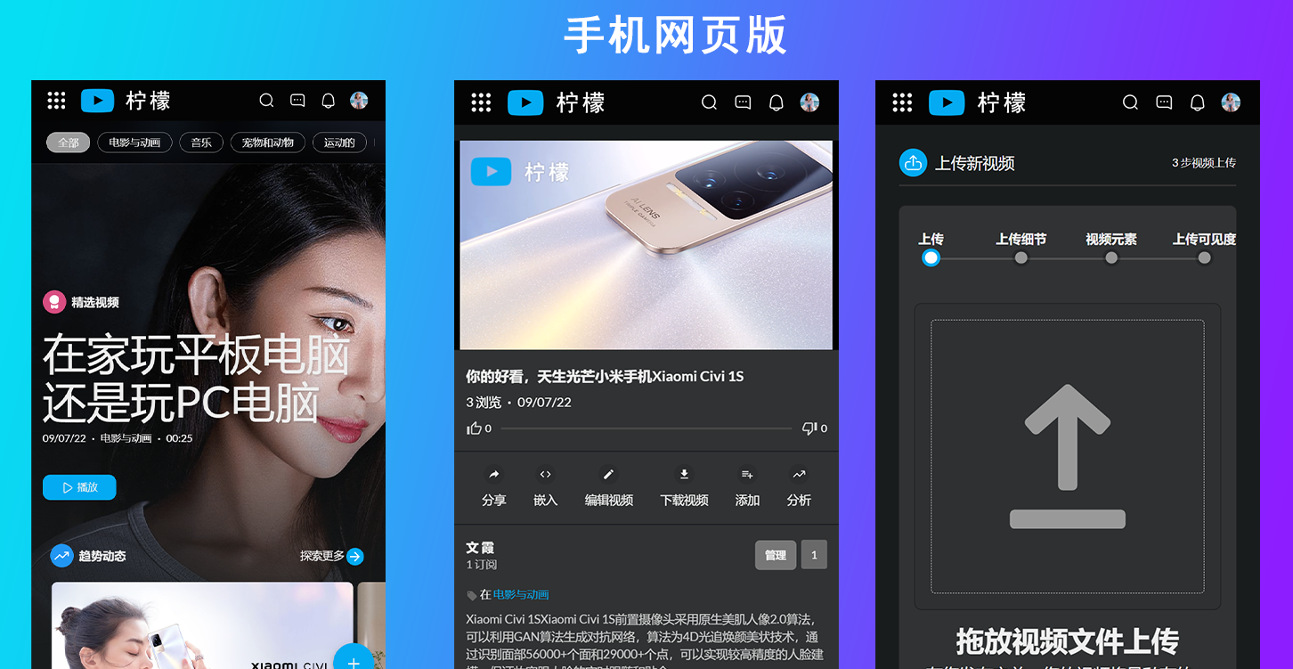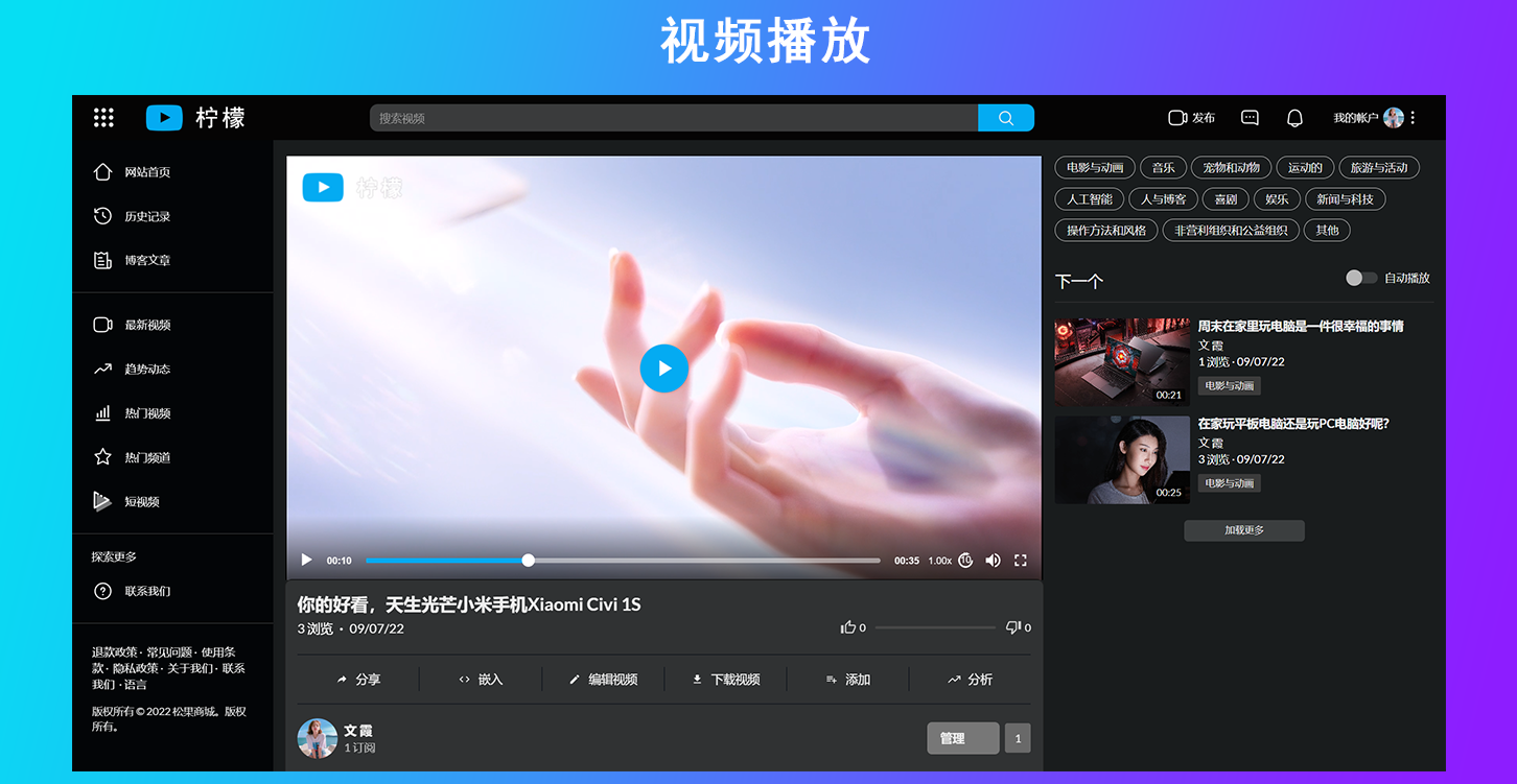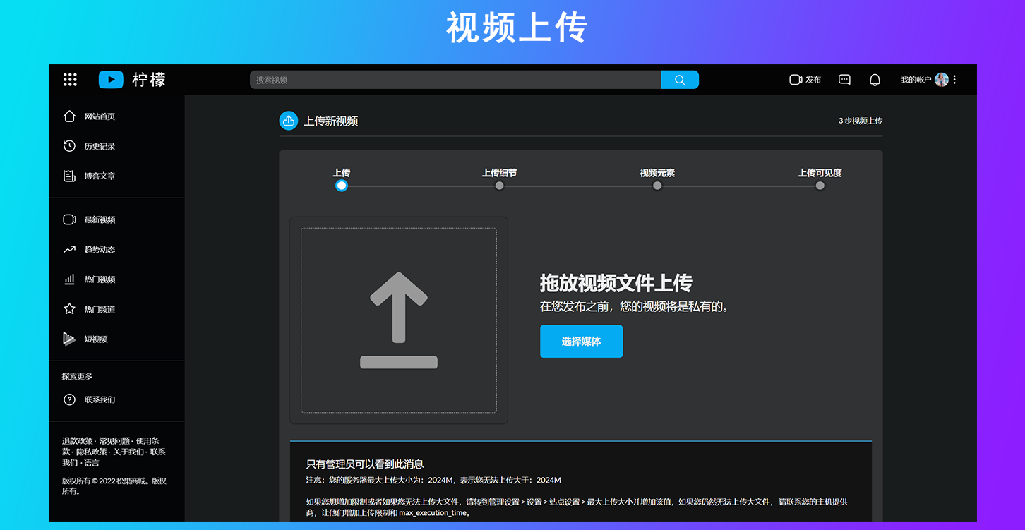 这是一款视频网站源代码,程序语言是PHP,你可以利用这款源代码快速搭建自己的视频网站,搭建完成以后用户可以在你的网站上面注册上传视频,或者上传短视频。评论视频和分享视频等,与此同时这款系统它支持ffmpeg,这意味着你可以上传任何格式的视频并转换成不同分辨率的视频,并且上传视频自动获取封面图,系统配备了三款主题风格,你可以根据你喜欢的模板在后台自由切换你喜欢的主题,配合后台管理,你可以设置网站名称和网站的图标logo等等。如果你搭建视频网站我们强烈推荐这款。