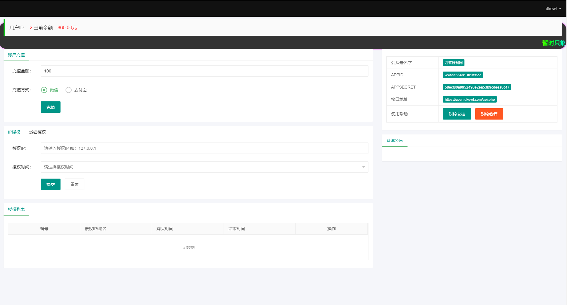 2023全新微信公众号无限回调系统源码 | 亲测可用 2023全新微信公众号无限回调系统源码 | 亲测可用目前支持对接易支付,支持用户自助充值,自助购买授权,支持自助更换授权,支持自助续费授权 转载请说明出处,本文来自[original]老黑源码 » 2023全新微信公众号无限回调系统源码 | 亲测可用
