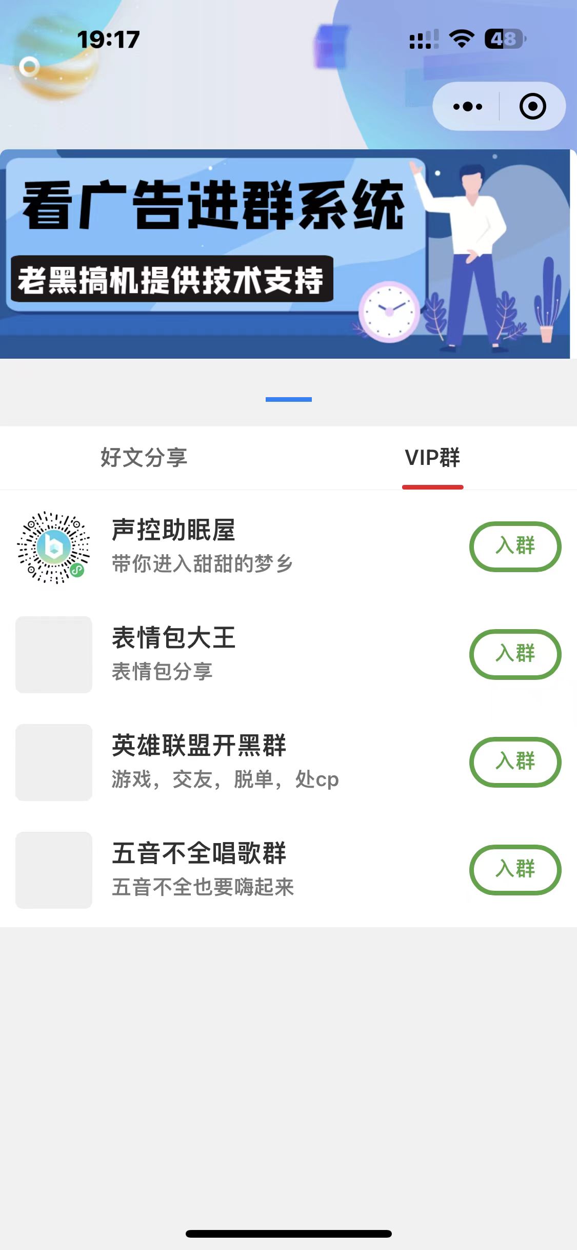 1:看广告弹出二维码入群,粉丝就成神器了。