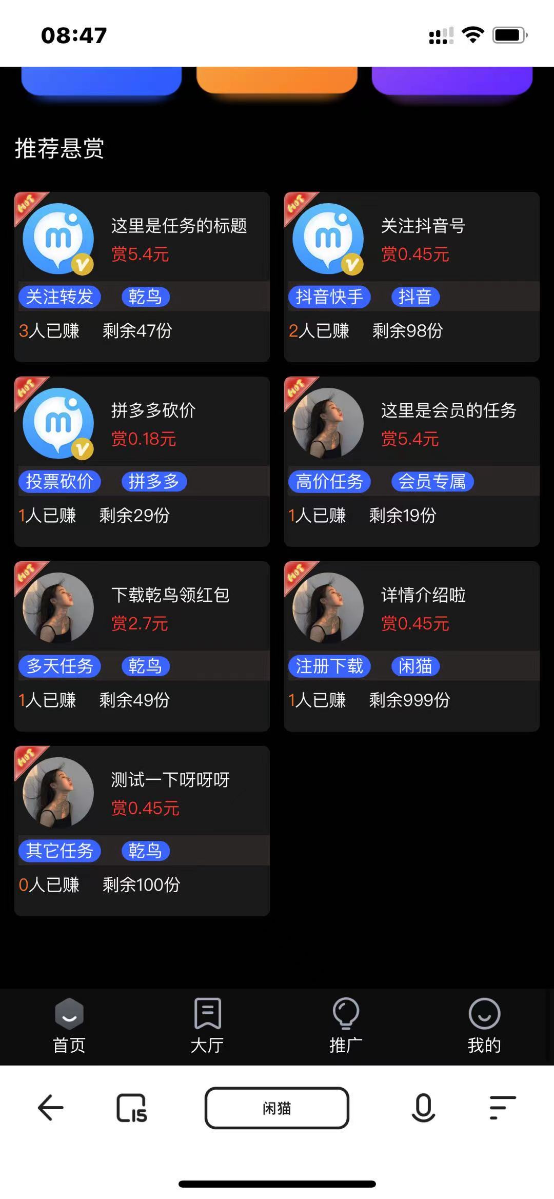 老黑源码 » 众人帮任务帮威客兼职双端网页端悬赏任务源码蚂蚁聊天抖音快手头条点赞三级分销