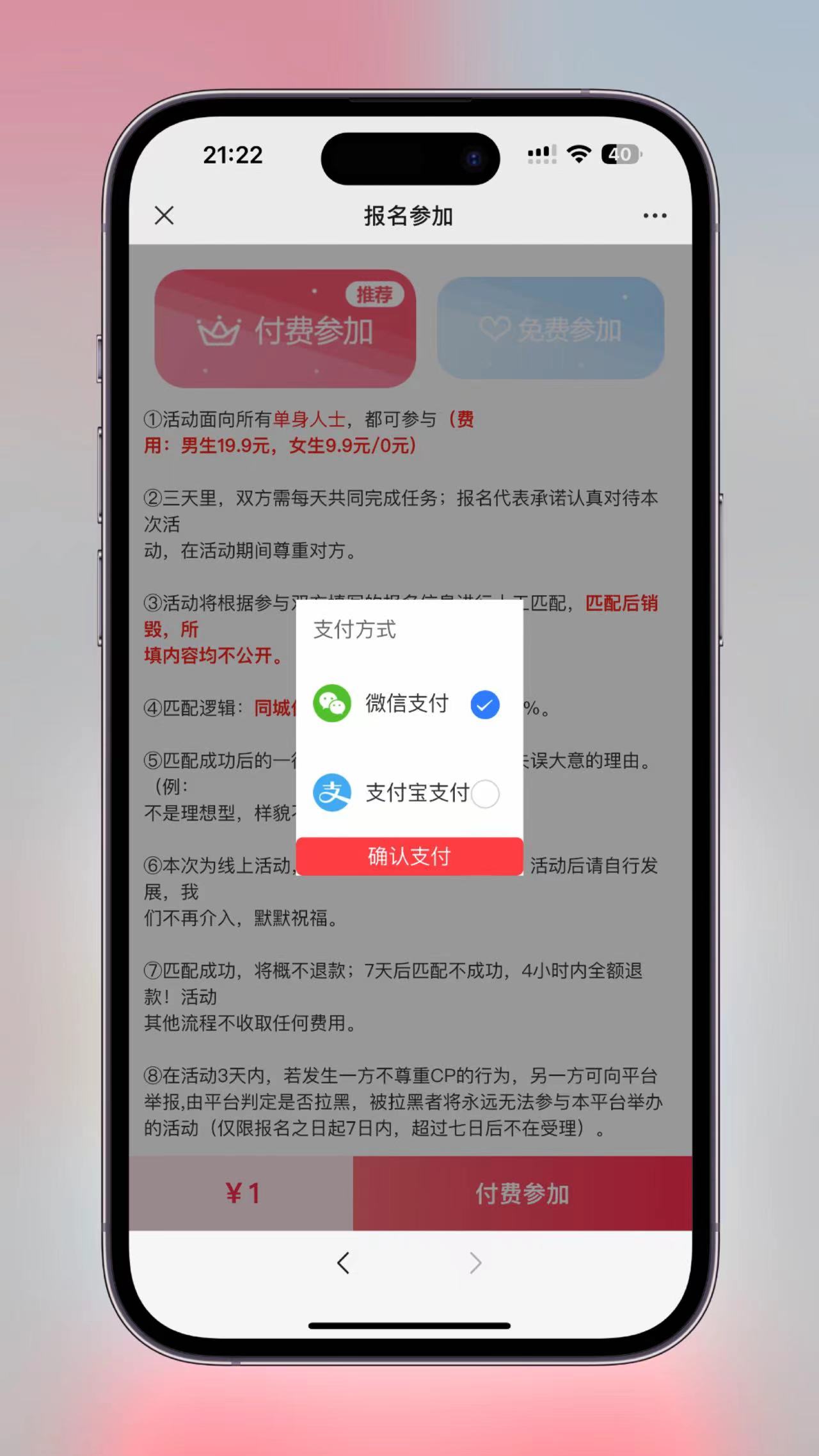 1:可以设置男生收费,女生免费。(避免活动缺女