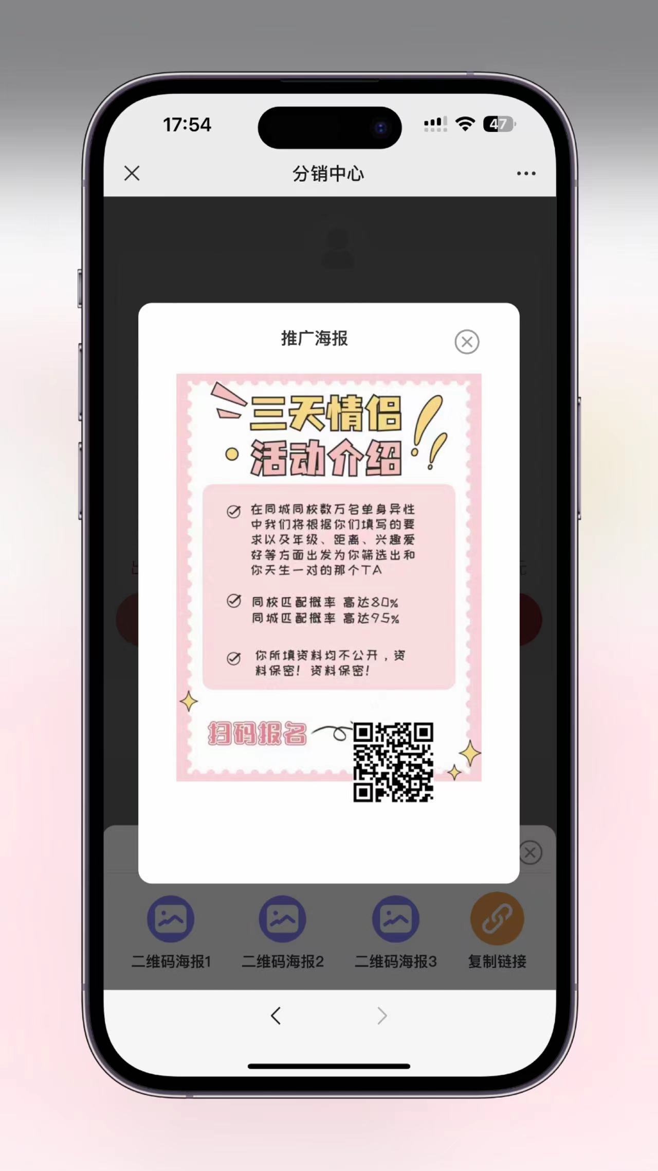 4:分销支持多海报生成,利于推广。