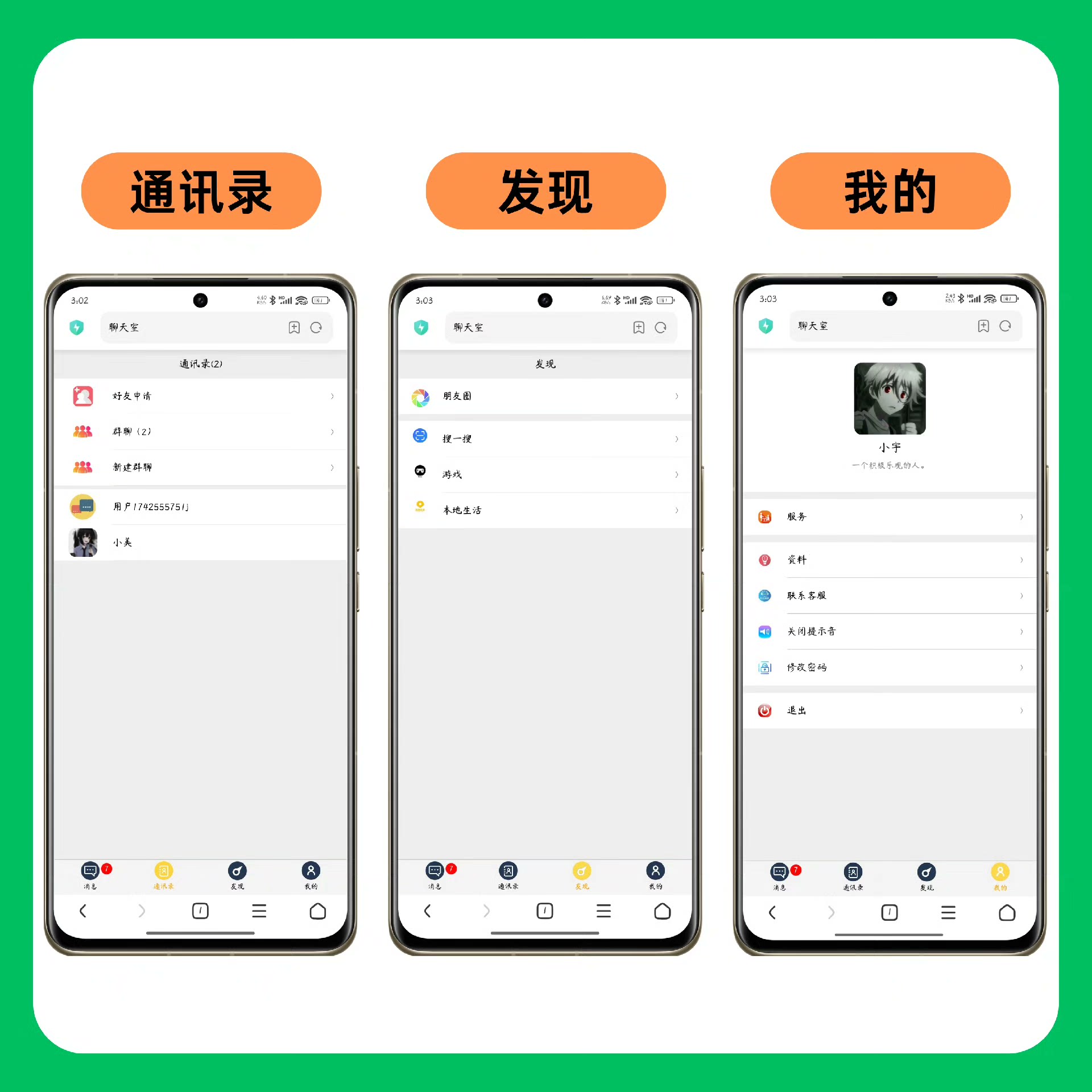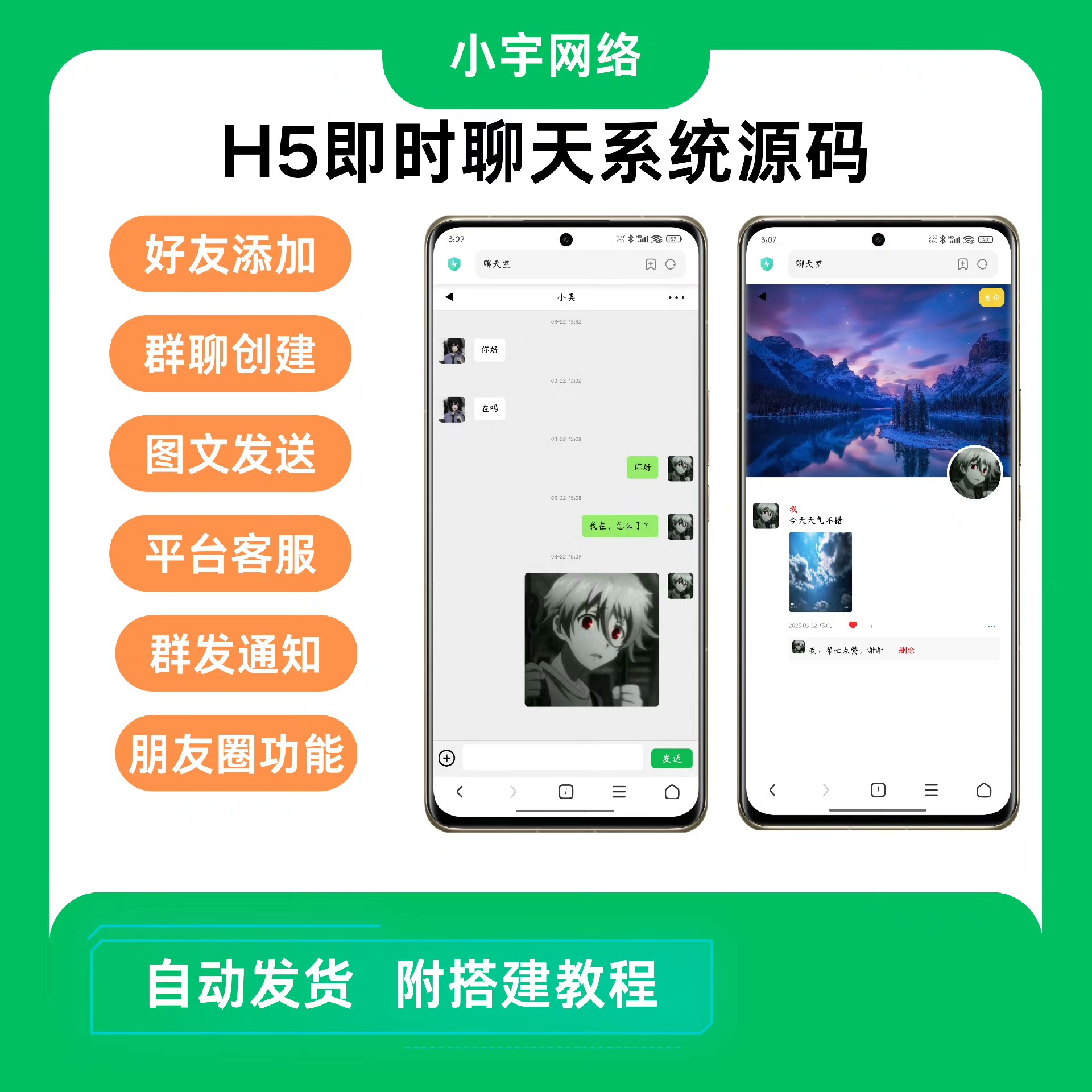 这是一款支持 H5 端的多功能即时通讯聊天系统,集成朋友圈、好友管理、群聊互动、图片发送、在线客服等多种功能,满足企业、团队及个人项目的多场景沟通需求。系统提供后台管理、群聊管理、用户管理及群发通知等实用功能,让交流更加便捷高效。