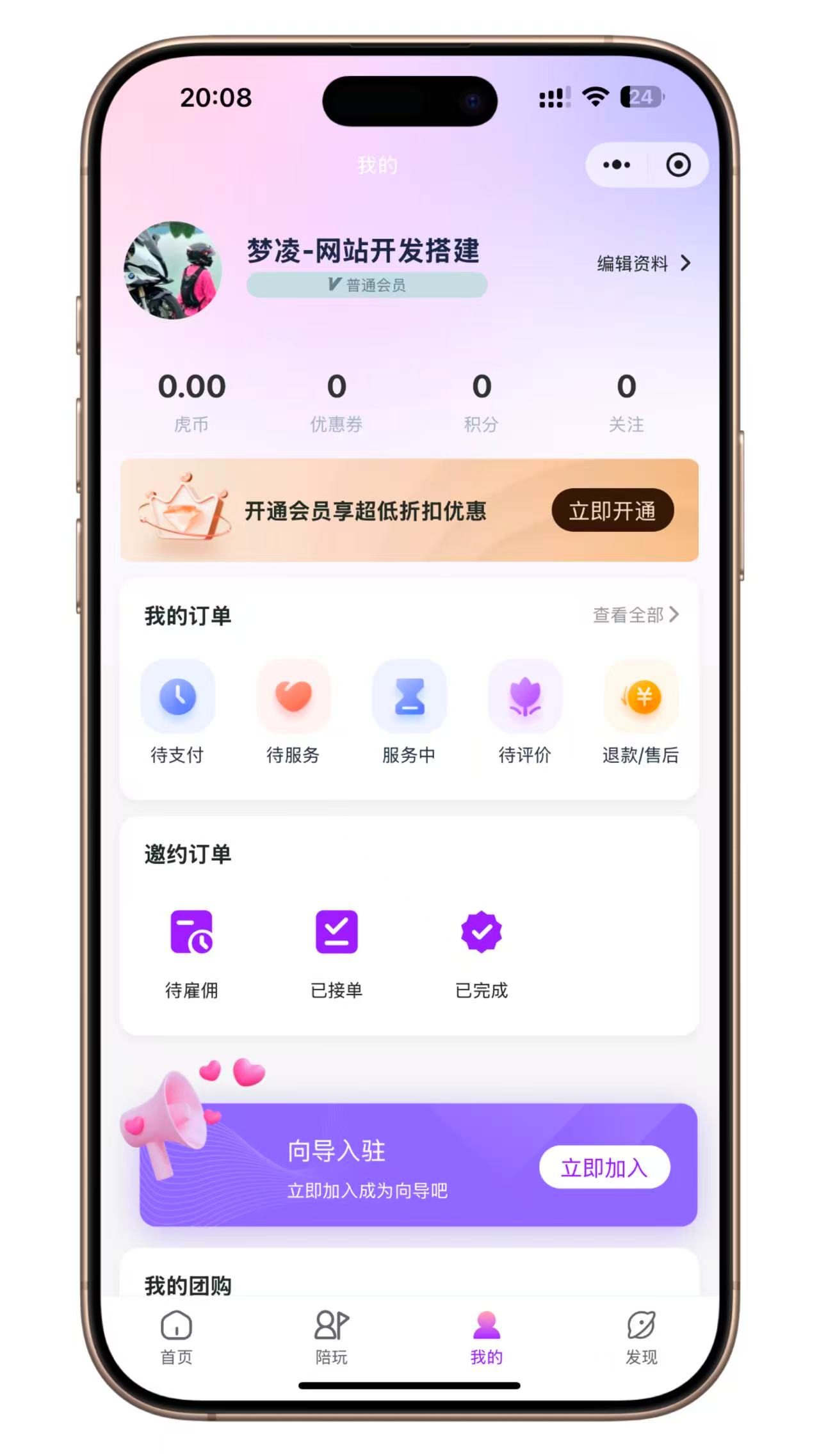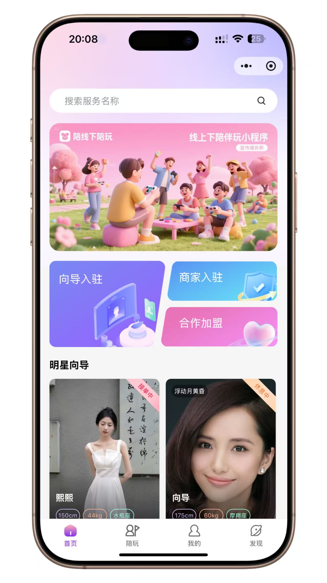 商家/机构入驻: 支持专业陪玩工作室或公司级商家入驻,扩展服务供给。
