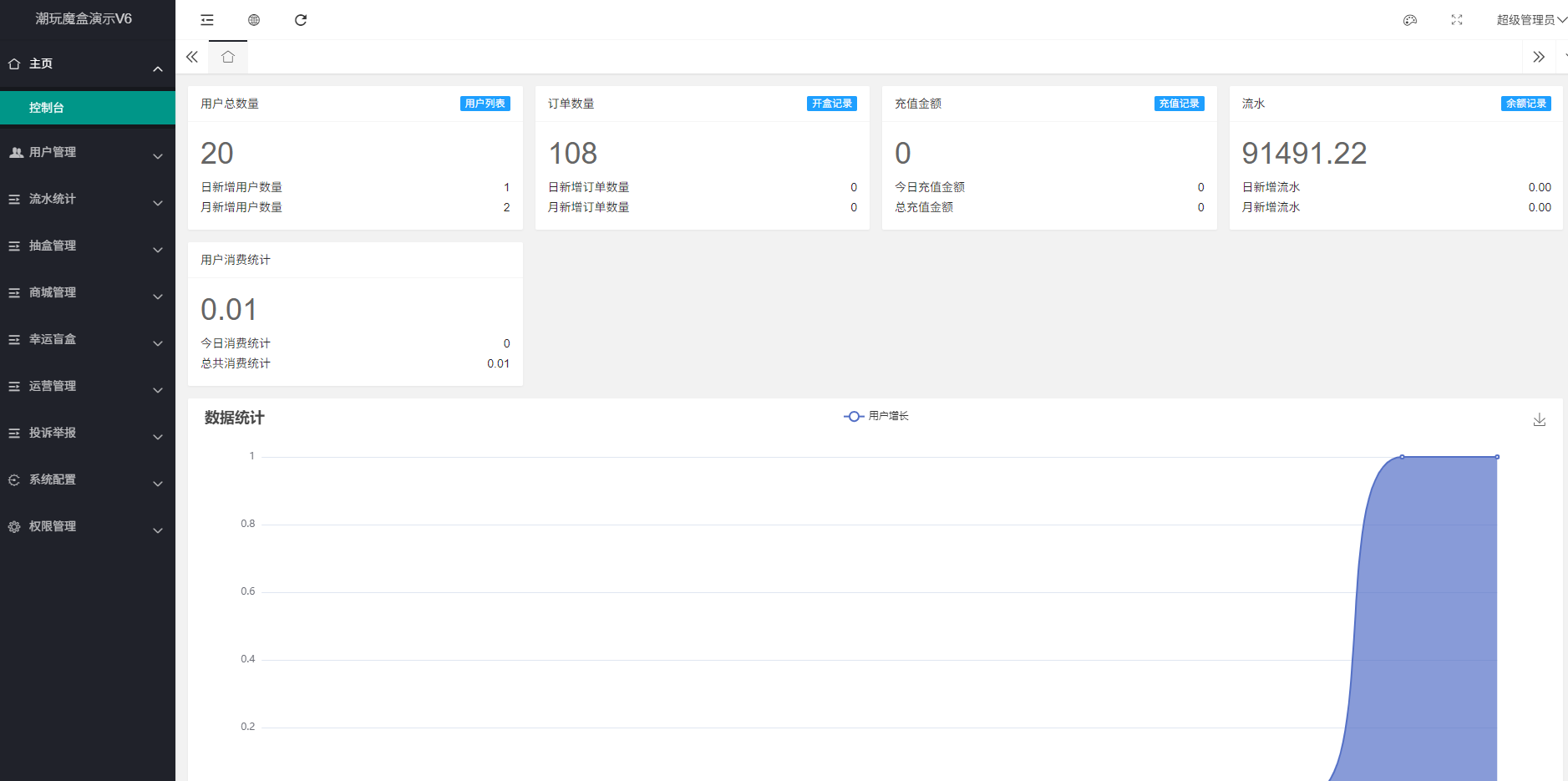 商品管理: 后台可灵活管理盲盒商品、奖品池、概率设置、库存等。