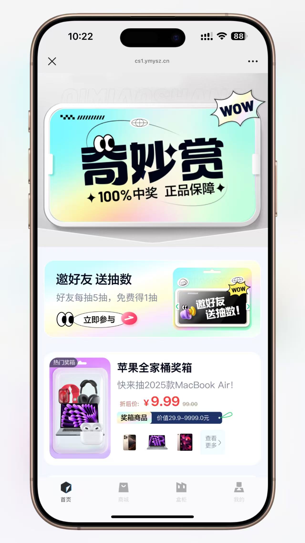 盲盒核心玩法: 实现抽奖、开盒、奖品展示(实物/虚拟)等核心盲盒功能逻辑。