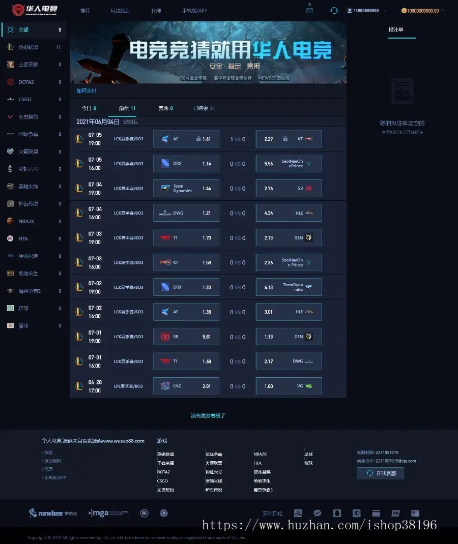 华人电竞/电竞比分/赛事预测/游戏电竞完整可运营源码
